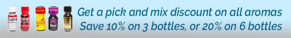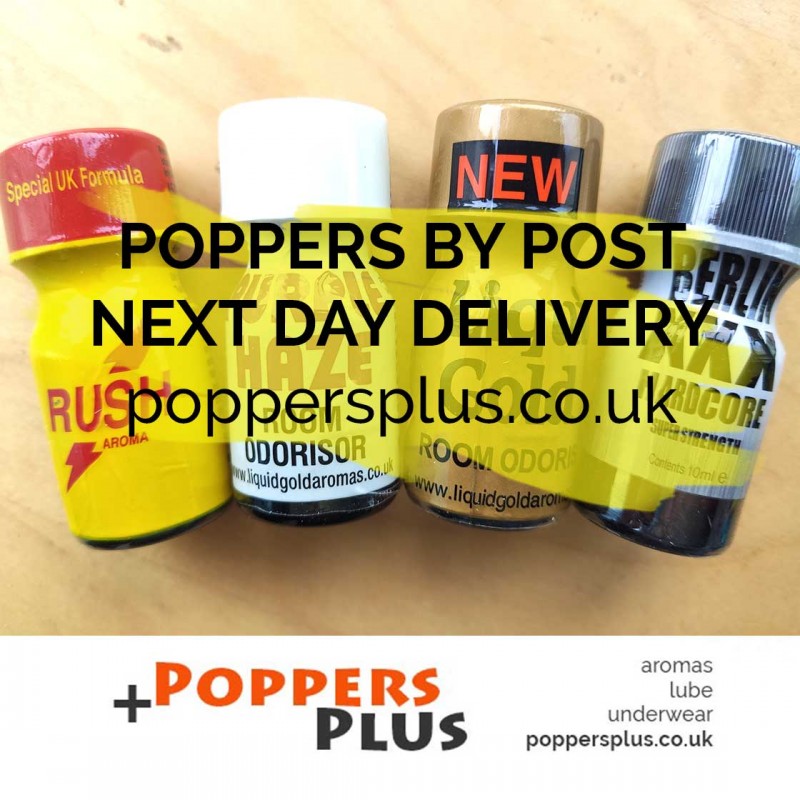 Full range available for store collection or home delivery, at Poppers Plus. Prices from £4.95.